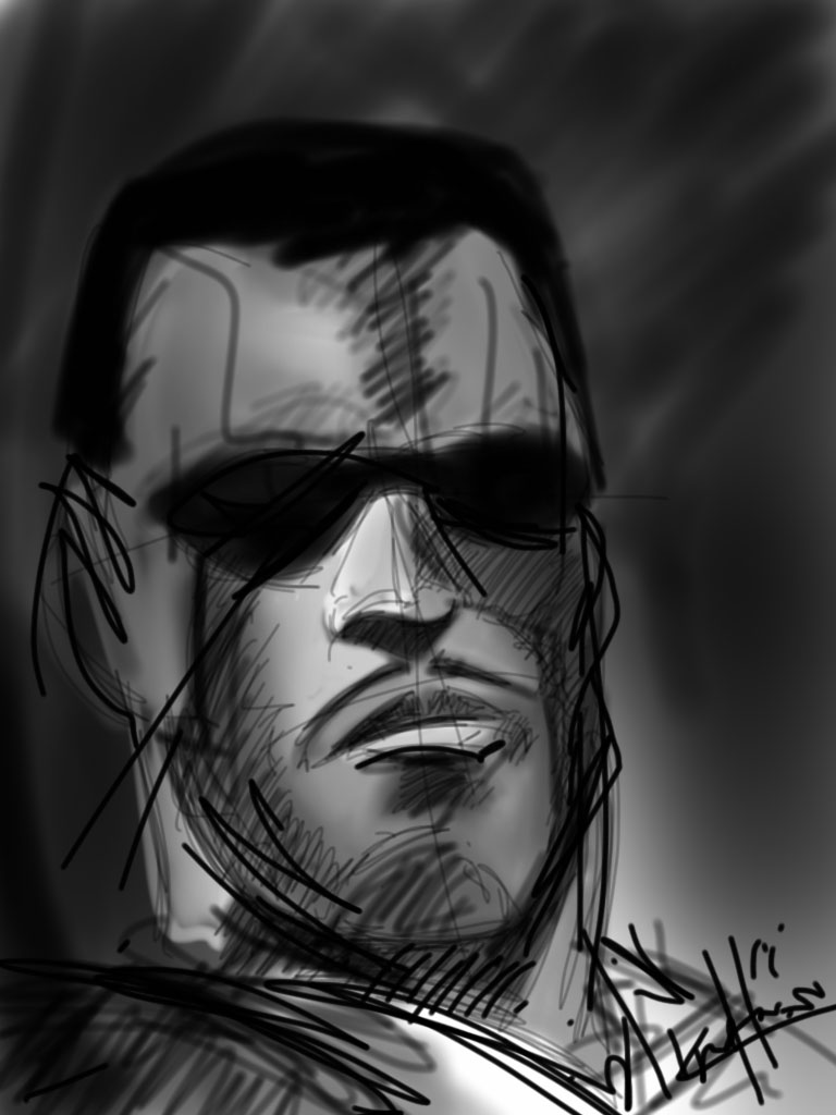 If you were a comic book fan boy in the early 1990s, you probably recognized Jim Lee's work, first on the Uncanny X-Men, then on the revamped version of the X-Men , and when he left Marvel to found Image where he launched WildCats. His style is really distinct, and he influenced a number of artists - I was a big fan of his work, as well as some of the other Image artists, and this quick doodle brought back some memories of that early stylistic influence.As an aside, I think an under-appreciated part of the visual change in the way comics looked back in the 1990s was the work of Steve Oliff and Olypotics, the guys that introduced color separation and computer coloring to the medium. I think the visual quality of the first titles out of Image, specifically Spawn, Cyberforce, and Wildcats was just something stunning and so different from the work at Marvel and DC....
